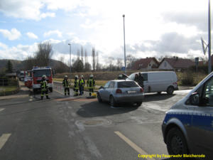 Bleicherode (Kreis Nordhausen). Bei einem Verkehrsunfall in Bleicherode sind am Donnerstag zwei Personen verletzt worden. Der Unfall ereignete sich gegen 10 Uhr, als der 52-jährige Fahrer eines Kleintransporters vom Gemeindemühlenweg auf den Heerweg abbiegen wollte und dabei einen herannahenden Pkw übersah.