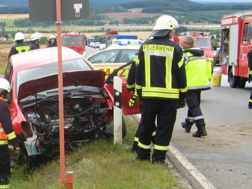 Nach weiteren 80 Metern kam das Fahrzeug an einer Brücke zum Stehen. Der Fahrer wurde bei dem Aufprall im Auto eingeklemmt und musste von der Feuerwehr geborgen werden. Ein Rettungswagen brachte den schwer verletzten Mann in das Südharz-Klinikum. Es kann nicht ausgeschlossen werden, dass der Fahrer plötzlich gesundheitliche Probleme hatte, die zum Verlassen der Fahrbahn führten.