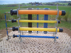 Um die Ausbildung im Fachgebiet Gefahrgut möglichst praxisnah zu gestalten, haben die Angehörigen der Feuerwehr Bleicherode auf dem Gelände der Feuerwache in der Gütersloher Straße eine Übungsanlage errichtet, mit der das Abdichten von verschiedensten Leckagen an Rohrleitungen geübt werden kann.Austretendes Gefahrgut wird dabei durch Wasser, das unter Druck in die Übungsanlage ein-gespeist wird, simuliert.