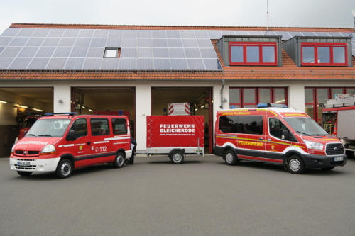 Am 5. Mai 2017 feierte die Stützpunktfeuerwehr Bleicherode die Übergabe von zwei neuen Fahrzeugen und einem Anhänger in ihren aktiven Dienst. Diese Erweiterung der Ausrüstung umfasst einen Mannschaftstransportwagen (MTW), einen Logistikanhänger sowie ein Einsatzleitfahrzeug.