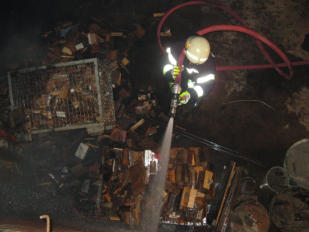 Vor Ort stellte sich heraus, dass es sich nicht um einen Scheunenbrand handelte, sondern um einen Brand eines Holzstapels innerhalb der Scheune. Umgehende und umsichtige Passanten hatten das Feuer in den frühen Morgenstunden bemerkt und unverzüglich die Feuerwehr alarmiert.