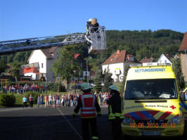 Zum Glück war es "nur" eine Einsatzübung, in der das Zusammenspiel von Rettungskräften und dem Personal der Grundschule geübt werden sollte.