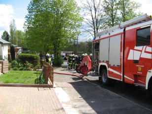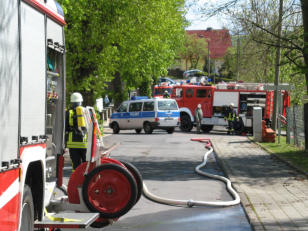 Stadtbrandmeister Burkhard Keil berichtete, dass beim Eintreffen der Feuerwehr gegen 11 Uhr die Küche des Hauses bereits in Flammen stand. Der Brand, der im Bereich des Herdes seinen Ursprung gehabt haben soll, wurde von einem Trupp unter schwerem Atemschutz schnell unter Kontrolle gebracht. Die Löscharbeiten konnten gegen 11:20 Uhr abgeschlossen werden.