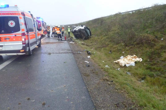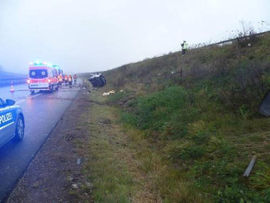 Der 44-jährige Fahrer eines Kleintransporters aus dem Landkreis Görlitz verunglückte am Dienstagmorgen gegen 6 Uhr auf der A 38 zwischen den Anschlussstellen Bleicherode und Breitenworbis kurz vor dem Tunnel Höllberg in Richtung Göttingen. Er geriet aufgrund unangepasster Geschwindigkeit bei Aquaplaning ins Schleudern. Das Fahrzeug kam von der Fahrbahn ab, fuhr einen Hang hinauf und überschlug sich mehrfach. Der Fahrer wurde schwer verletzt und musste von mehreren Ersthelfern aus dem Fahrzeug geborgen und erstversorgt werden. Am Fahrzeug entstand wirtschaftlicher Totalschaden, die Gesamtschadenshöhe beläuft sich auf 25.500 Euro.