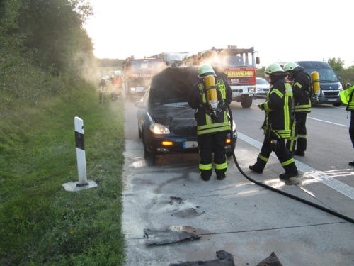 Der Fahrer hatte auf dem Standstreifen angehalten und das Fahrzeug verlassen. Dank des schnellen Eingreifens der Feuerwehren aus Niedergebra, Bleicherode und Sollstedt konnte das Feuer auf den Motorraum begrenzt werden.