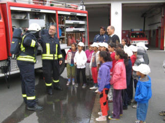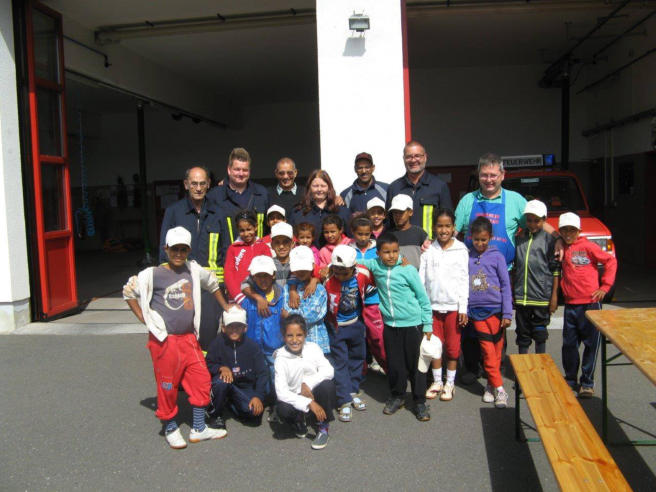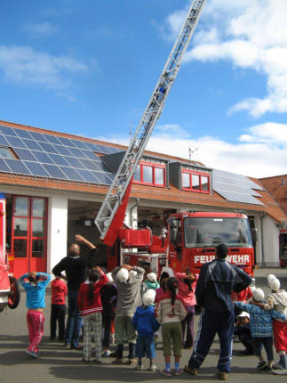 Am Dienstag hatten die Kinder aus der Westsahara die Gelegenheit, bei der Bleicheröder Feuerwehr eine spannende Erfahrung zu machen. Unter der Aufsicht von Jörg Linsel erfuhren sie, wie ein Wendestrahlrohr an der Drehleiter funktioniert.